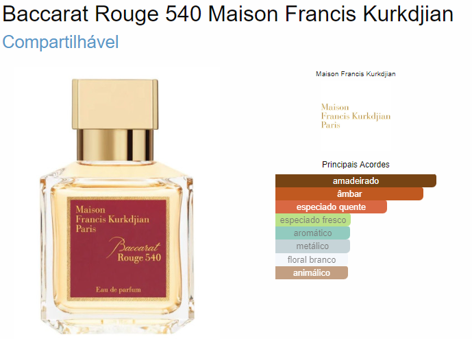 O Creme Hidratante Corporal Brand Collection 247 é feito com perfume todinho inspirado em Baccarat Rouge 540, um perfume Maison Francis Kurkdjian. Uma fragrância Âmbar Floral que reflete sofisticação e muito luxo. Um perfume para ser usado em ocasiões formais ou em dias inesquecíveis, indicado para todas estações, trás consigo notas refinadas como âmbar cinzento, açafrão e jasmim, capaz de transmitir elegância em poucas borrifadas.