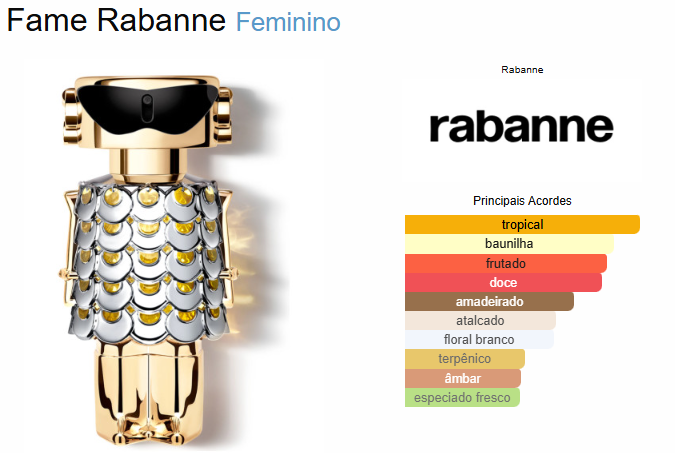 O Creme Hidratante Corporal Brand Collection 365 é inspirado em Fame, de Paco Rabanne. É um perfume feminino Floral Amadeirado Almiscarado. Sua fragrância exala uma feminilidade sensual, divertida e empoderada. O Perfume consegue capturar a essência do espírito da mulher parisiense. O aroma é um mix de Jasmim puro, Manga com um toque de sensualidade, de incenso cremoso. Seu vidro apresenta um dos vestidos mais icônicos da marca, um frasco ultra desejável com um design audacioso. Tão precioso quanto uma joia, tão irreverente quanto o moderno, a fama representada em um frasco.
