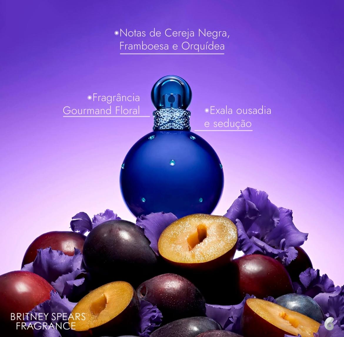 O perfume feminino Midnight Fantasy da marca Britney Spears é uma inebriante mistura de deliciosas frutas que te convidam a um misterioso reino de tentação e intriga. Fragrância sensual, frutada, doce e feminina.